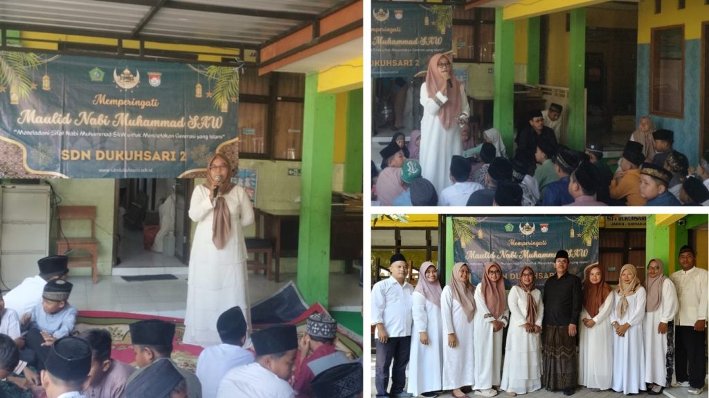 Pada hari selasa, 17 September 2024 SDN Dukuhsari melaksanakan kegiatan peringatan Maulid Nabi Muhammad SAW 1446 H / 2024 M dengan tema “Meneladani sifat Nabi Muhammad SAW untuk menciptakan Generasi yang Islami”. Kegiatan tersebut berjalan dengan sangat meriah dan merupakan momen yang penuh makna dengan melibatkan partisipasi aktif dari seluruh peserta didik beserta Guru dan Tenaga Kependidikan SDN Dukuhsari 2.